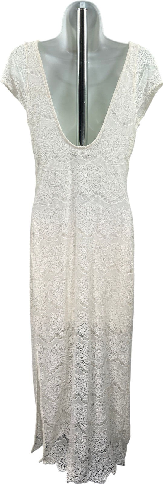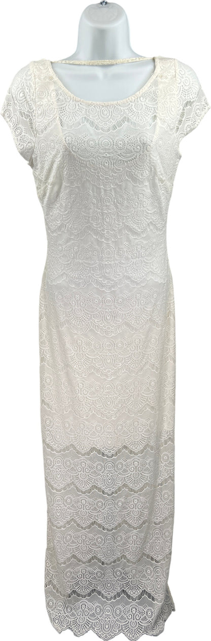 NEW Bebe Women’s White Lace Lined Open Back Maxi Dress - S