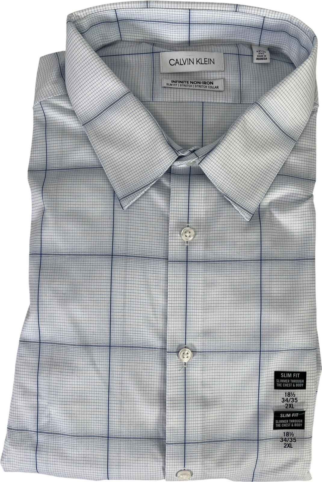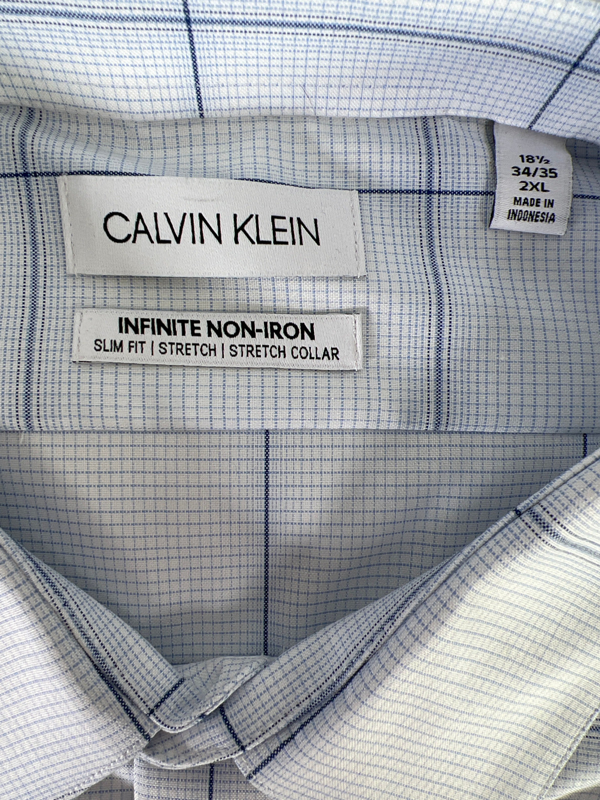 NEW Calvin Klein Men’s Blue Plaid Non Iron Slim Fit Button Up Shirt - 2XL