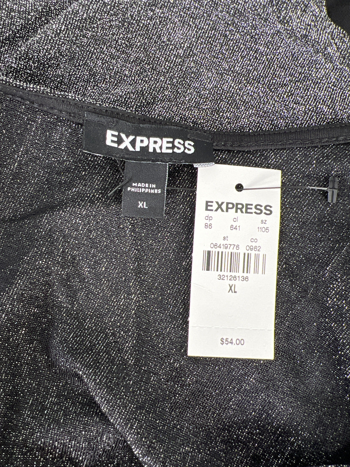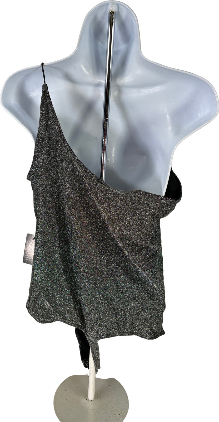 NEW Express Women’s Black/Silver Metallic One Shoulder Bodysuit - XL