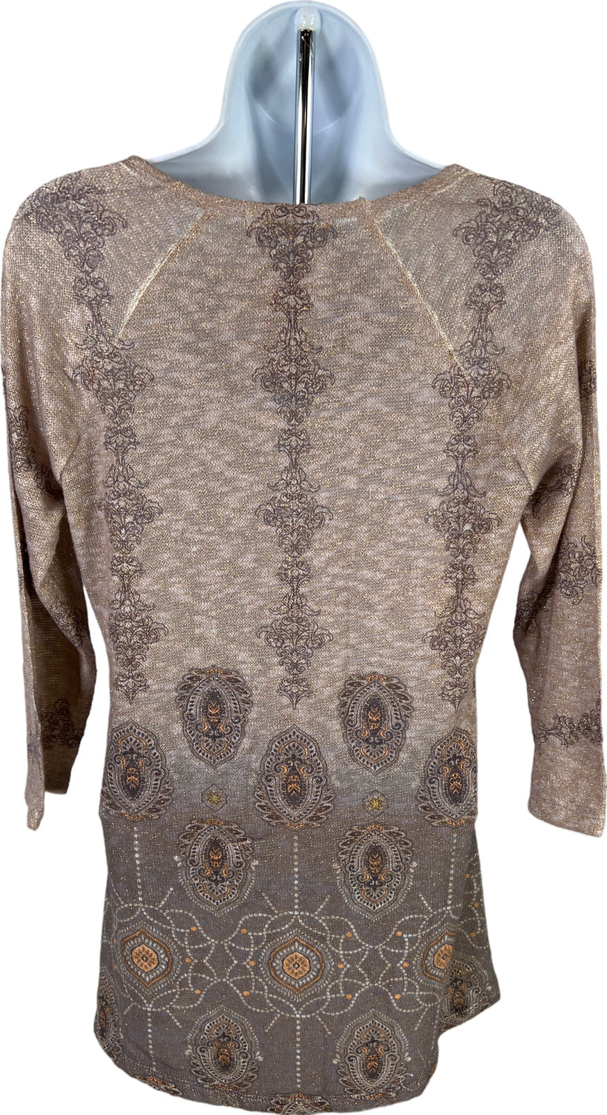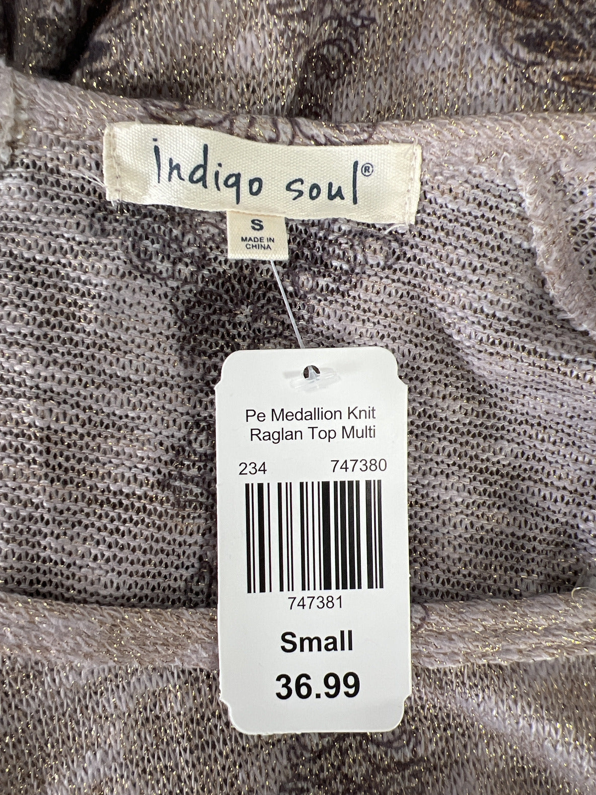 NEW Indigo Soul Women’s Purple/Gold Metallic Semi-Sheer Knit Tunic Shirt - S