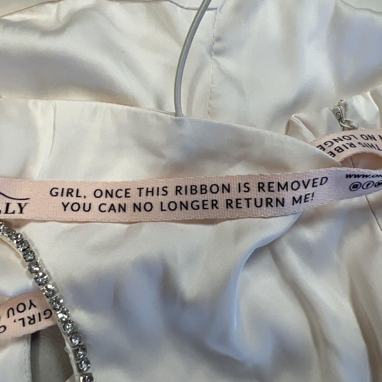 Shop the NEW Oh Polly Women's Ivory Rhinestone Spaghetti Strap Dress in size 6. This stunning dress features rhinestone accents, spaghetti straps, and a sleeveless design. Made of satin polyester, this short bodycon dress is perfect for any occasion.