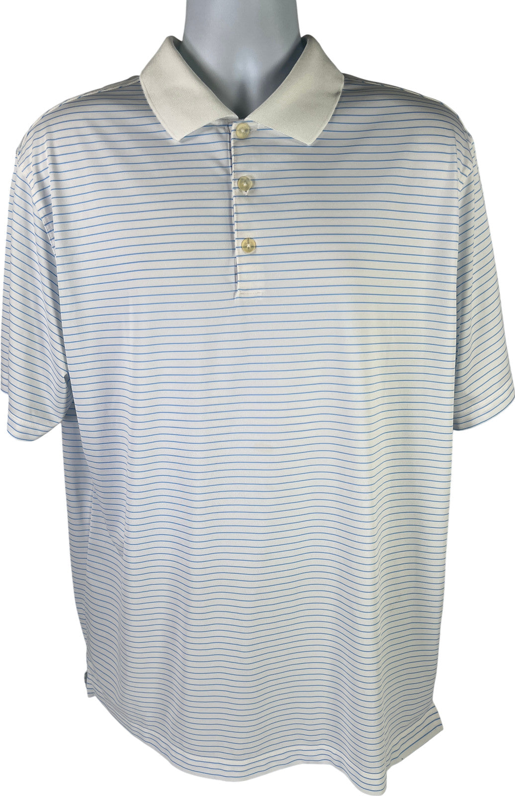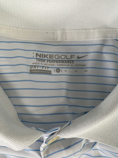 Nike Golf Men’s White/Blue Striped Short Sleeve Tour Performance Polo - XL