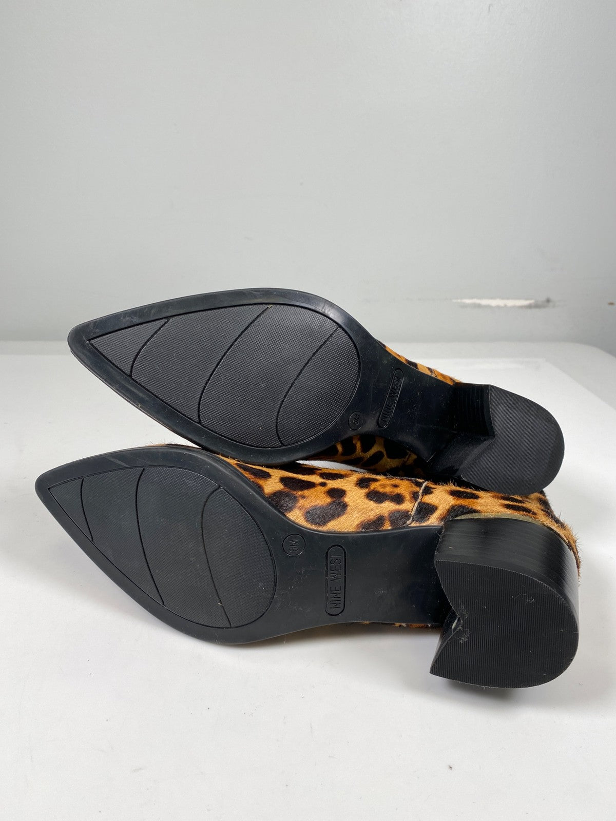 Nine West Women’s Brown Leopard Print Honor Cow Hair Chelsea Boots - 6