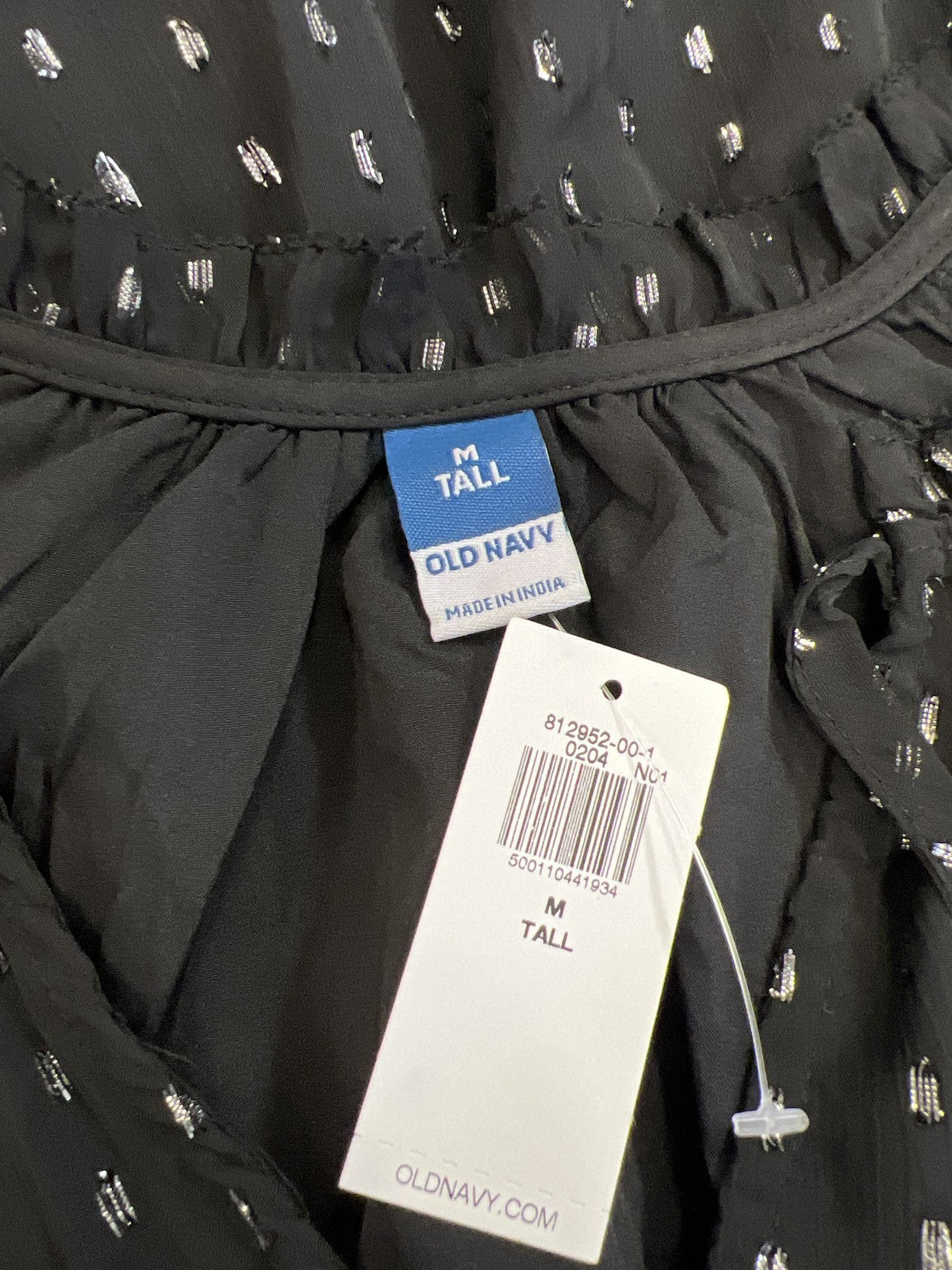 Old Navy Women’s Black Metallic Long Sleeve Smocked Dress - M Tall