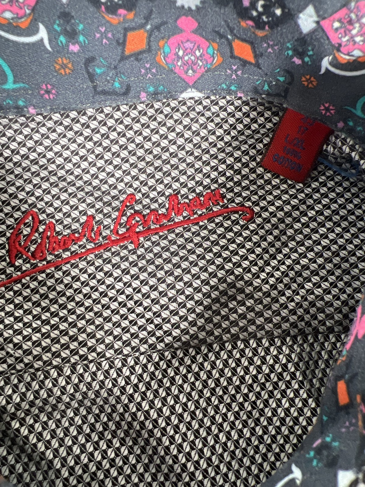 Robert Graham Men’s Black/White Long Sleeve Button Up Dress Shirt - 43 - L/XL