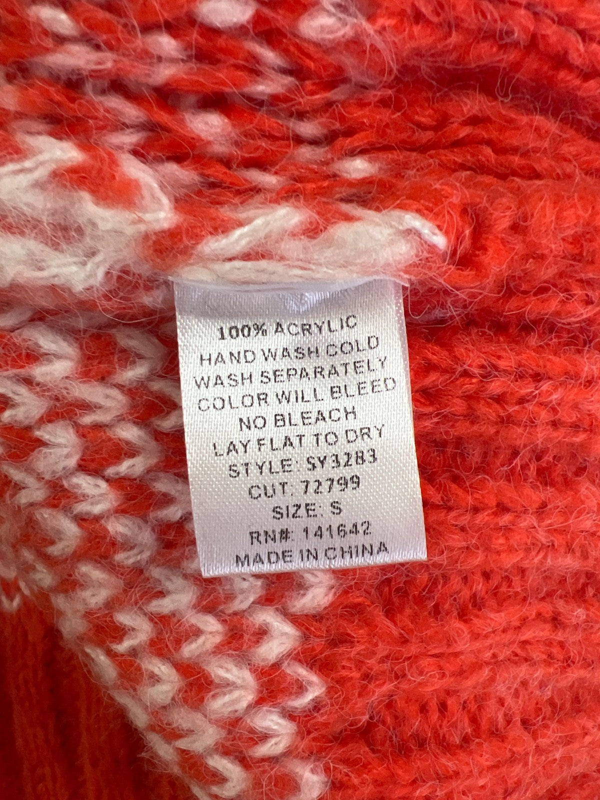 She + Sky Women’s Orange/White Long Sleeve Button Up Chunky Knit Sweater - S
