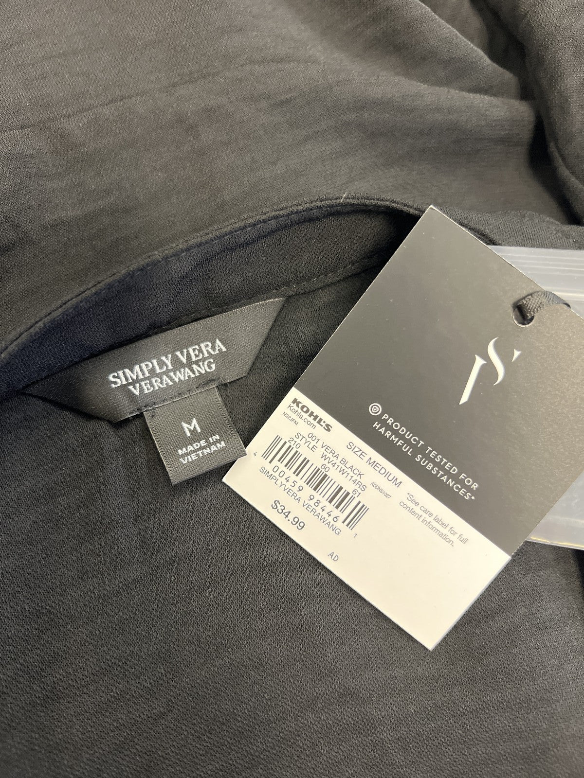 Simply Vera Wang Women’s Black Layered Bottom Button Up Blouse - M