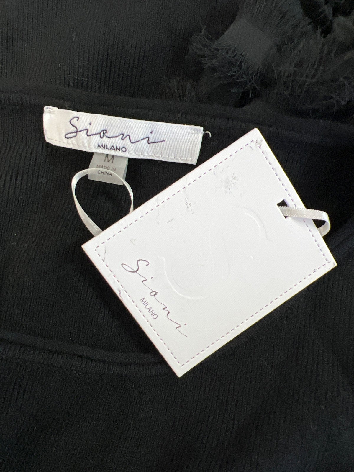 Sioni Milano Women’s Black Semi Sheer Fringe Sleeve Sweater - M