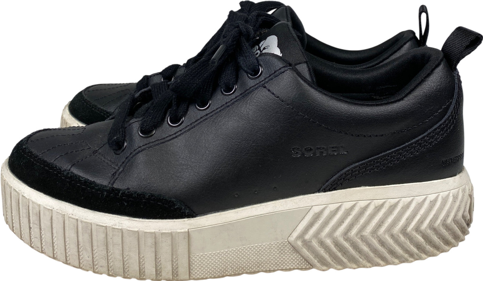 Sorel Women’s Black Leather Ona Ave Waterproof Platform Low Sneakers - 9