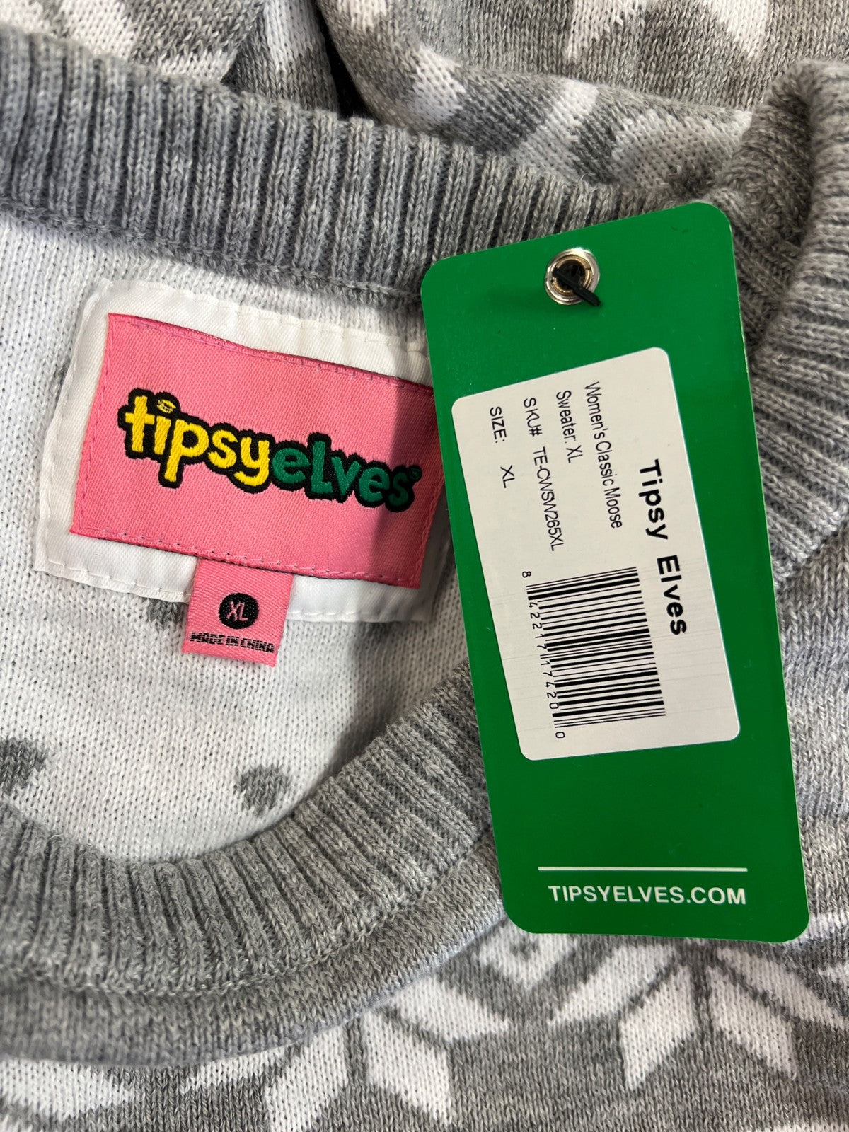 TipsyElves Women’s Gray Classic Moose Holiday Christmas Sweater - XL