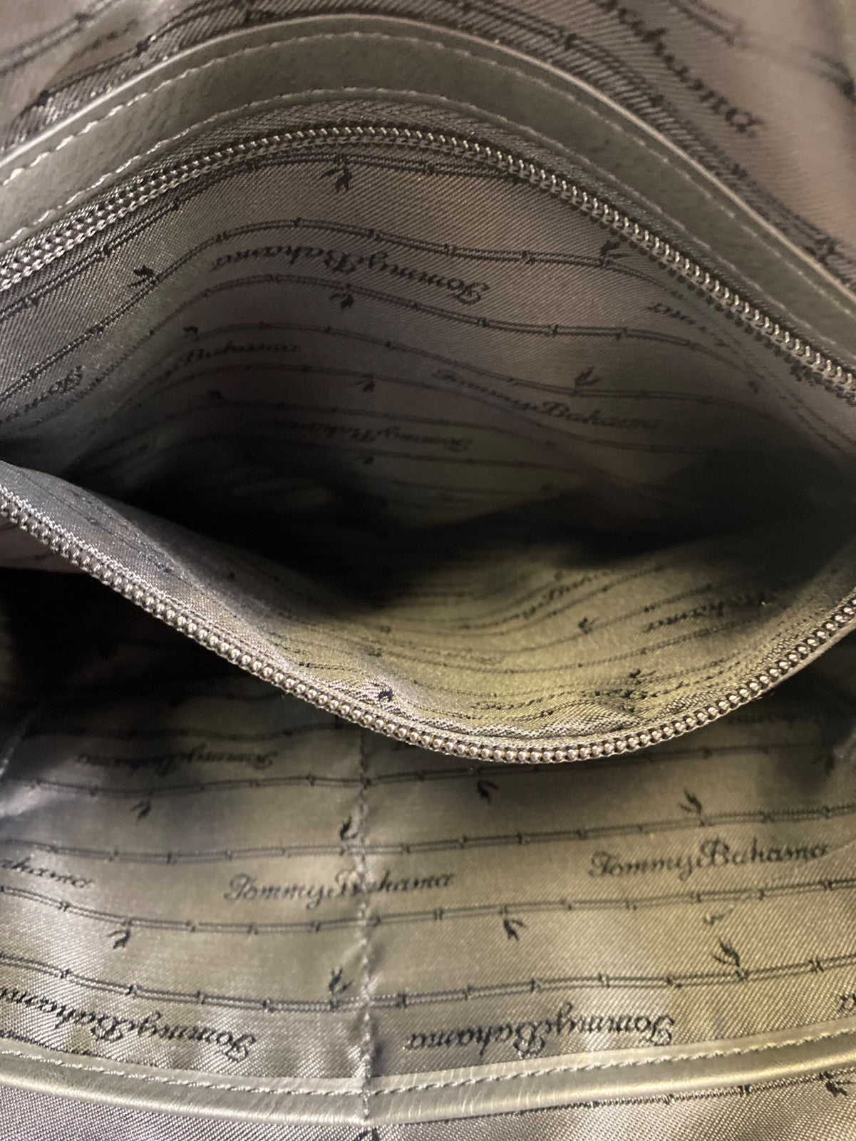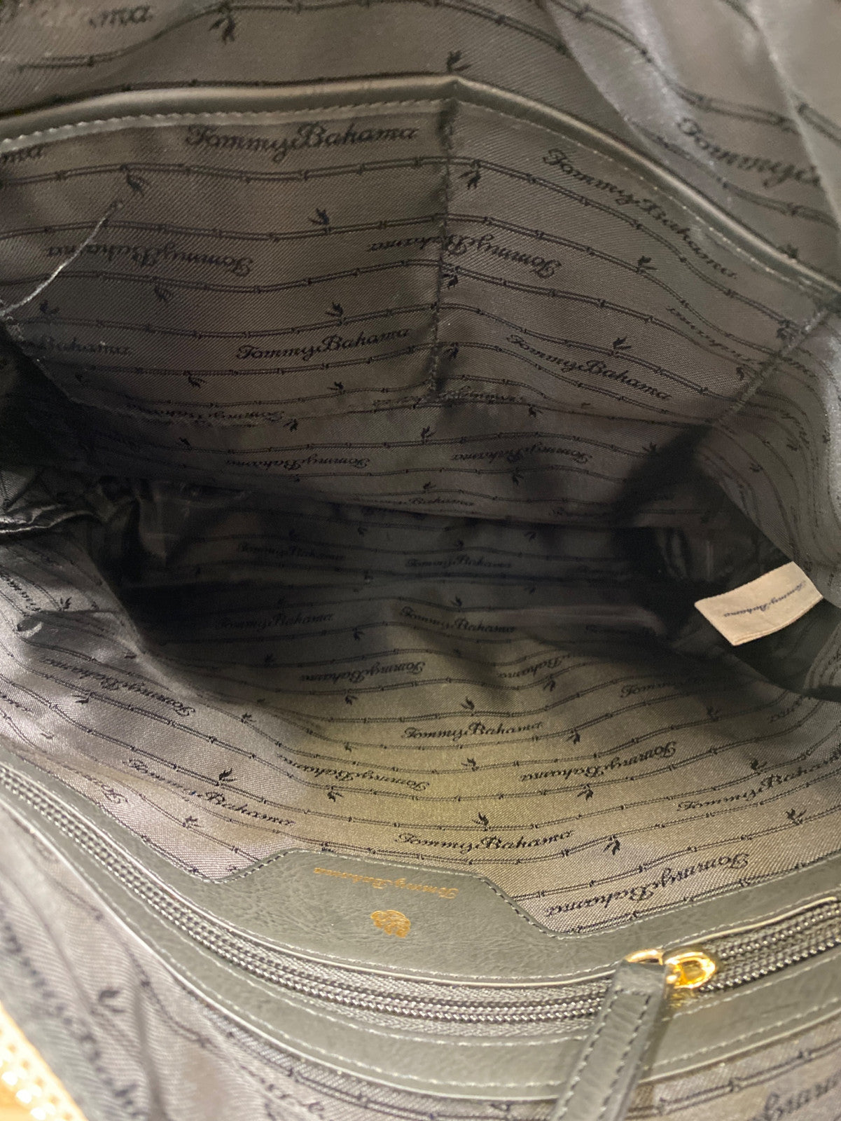 Tommy Bahama Women’s Light Beige Leather Zip Close Tote Bag Purse