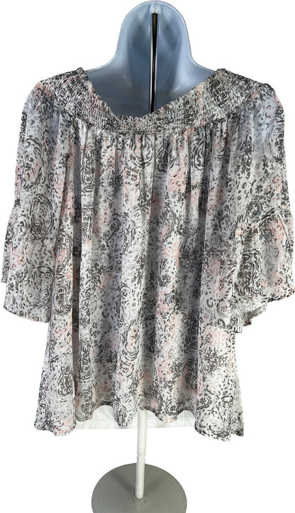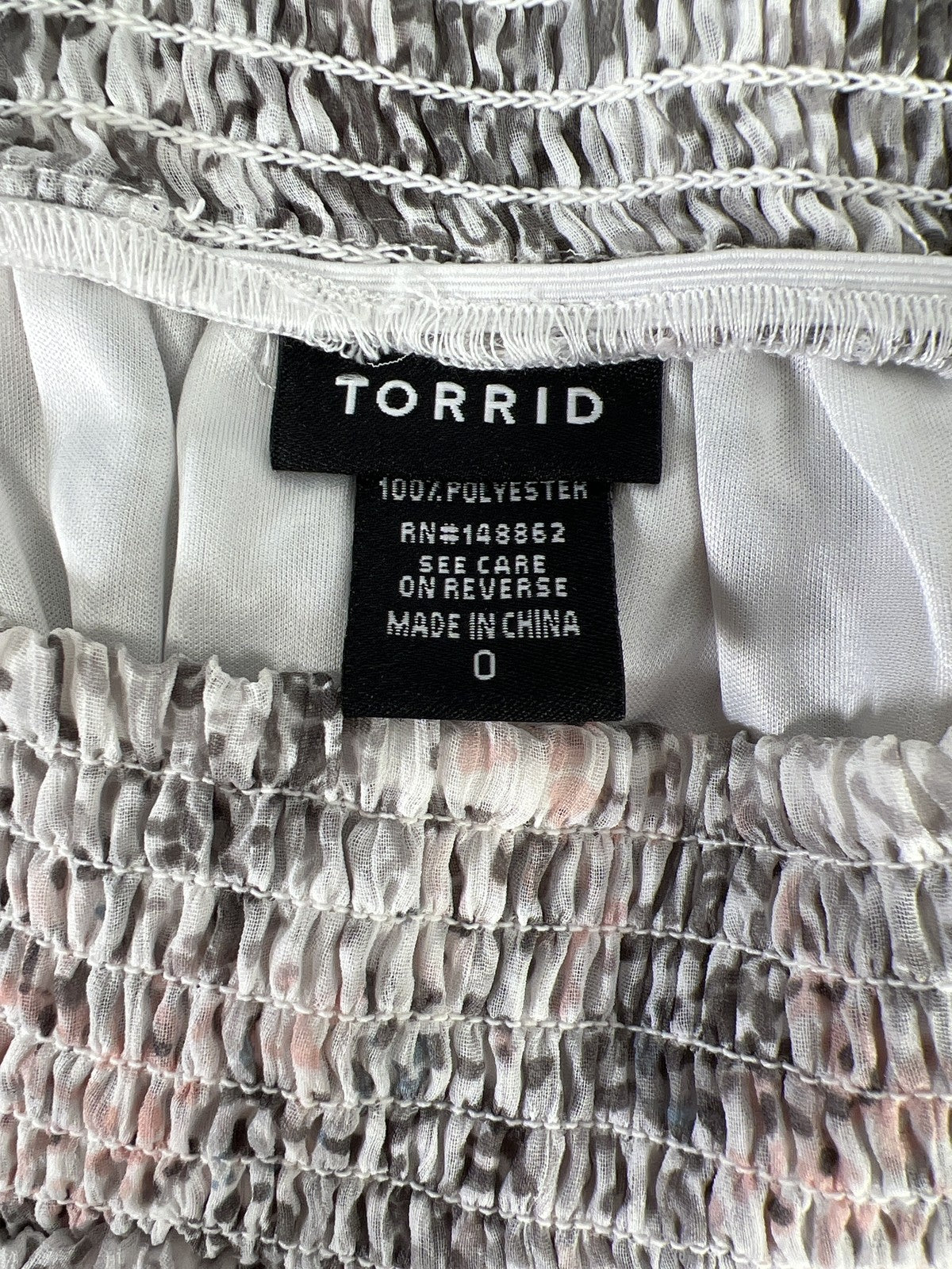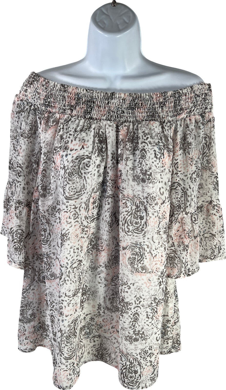 Torrid Women’s White/Gray Off The Shoulder 1/2 Sleeve Blouse - Plus 0