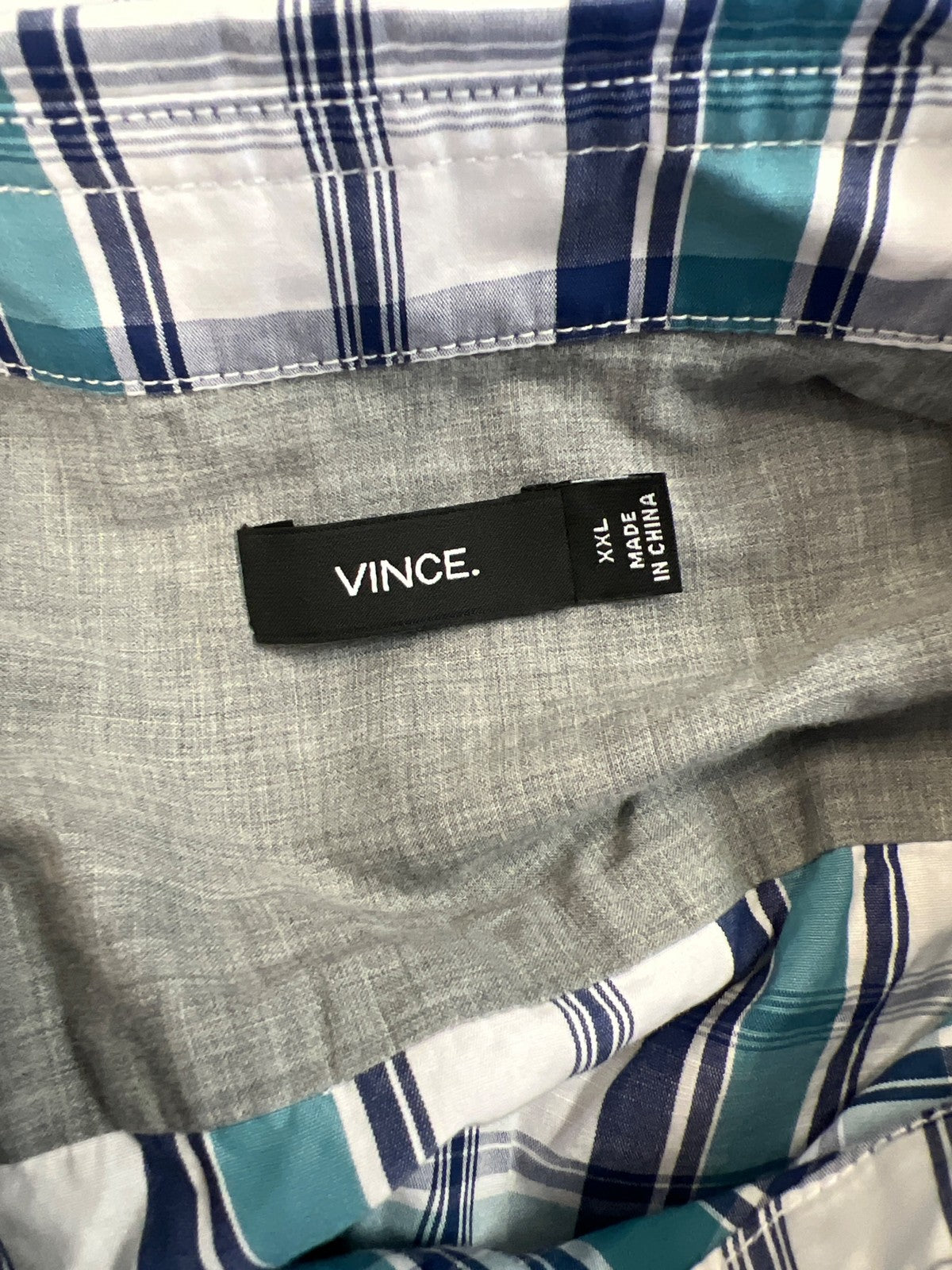 Vince Men’s White/Blue Plaid Long Sleeve Button Up Shirt - XXL