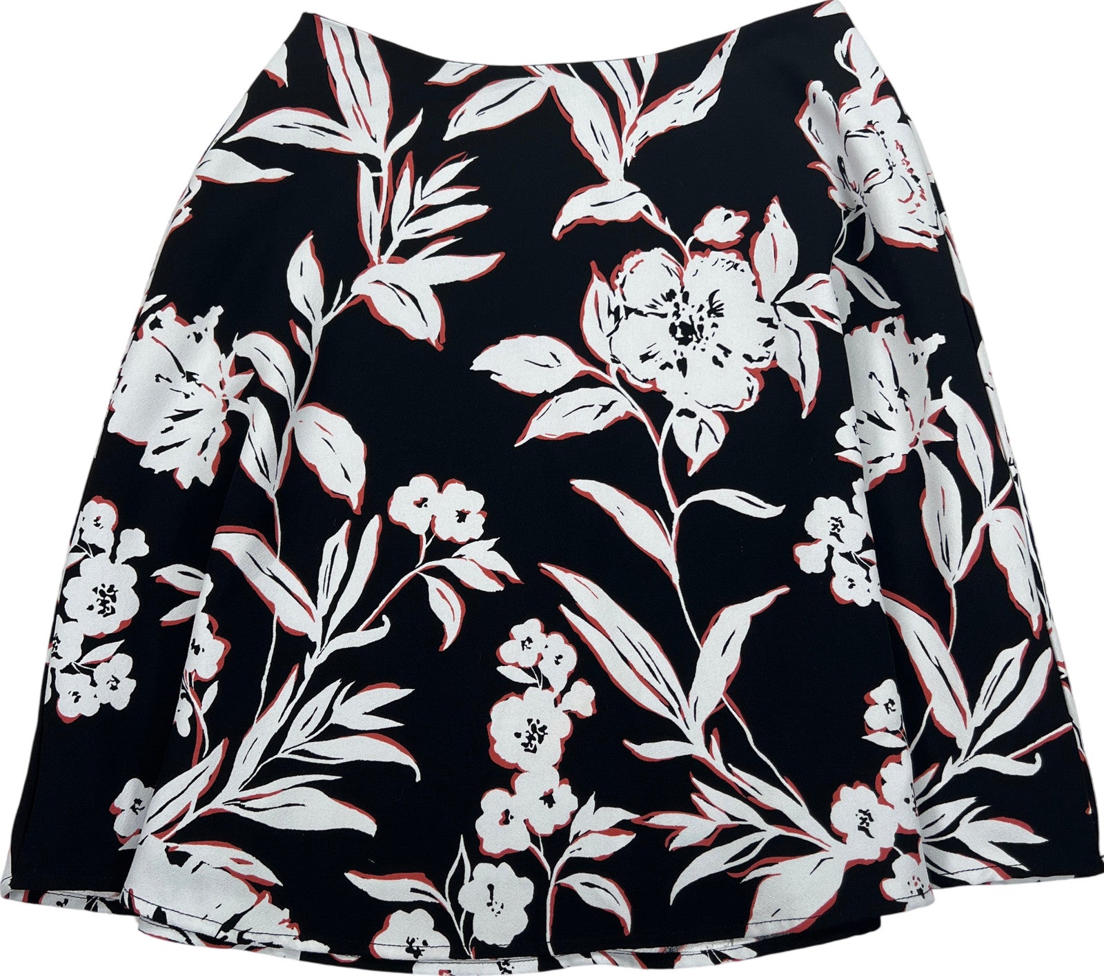 White House Black Market Women’s Black Floral Short A-Line Skirt - 4