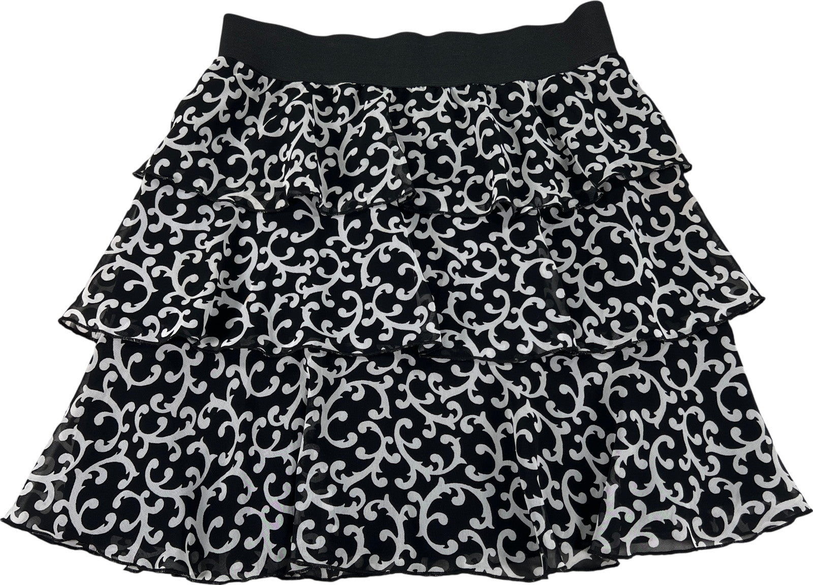 White House Black Market Women’s Black Floral Tiered Skirt - M