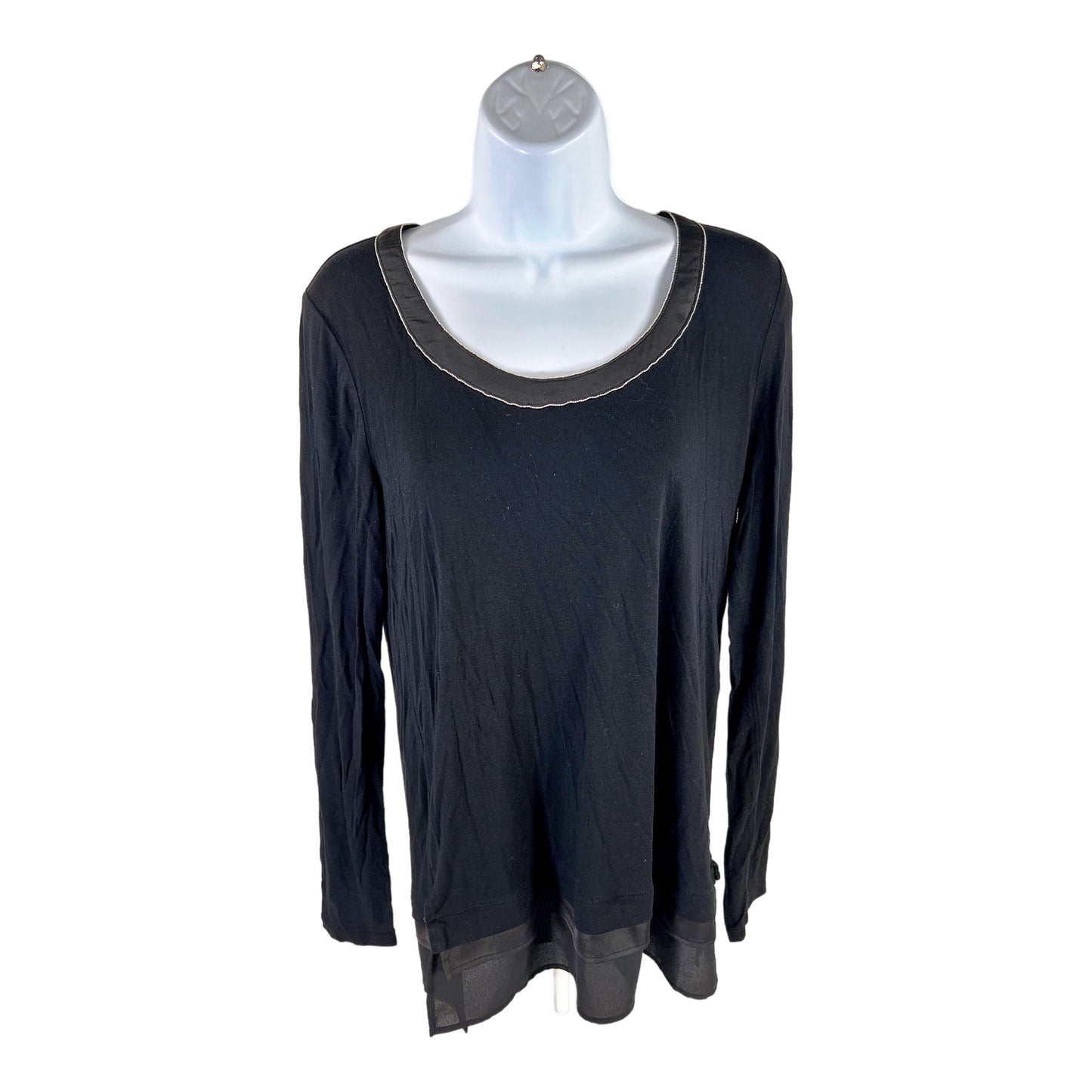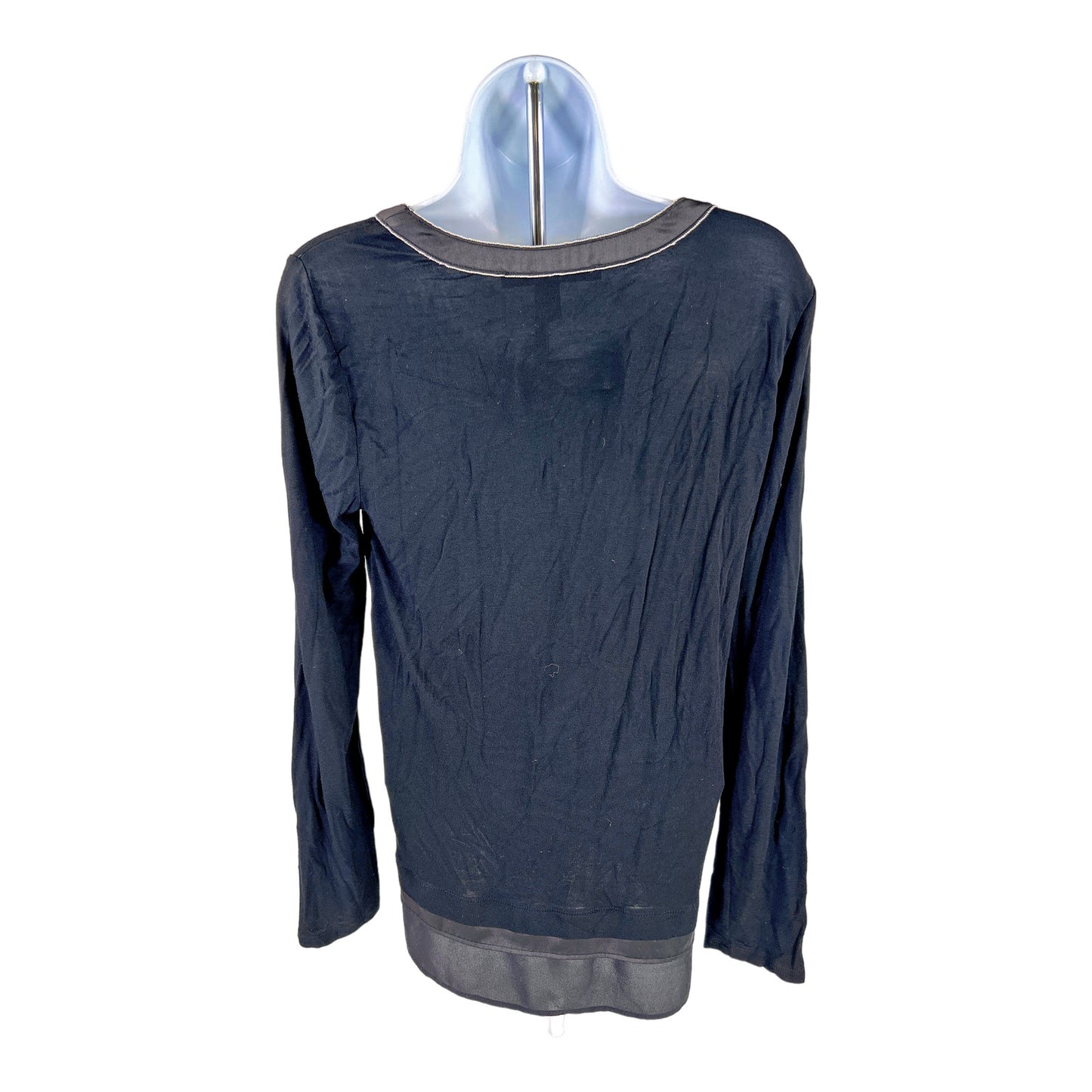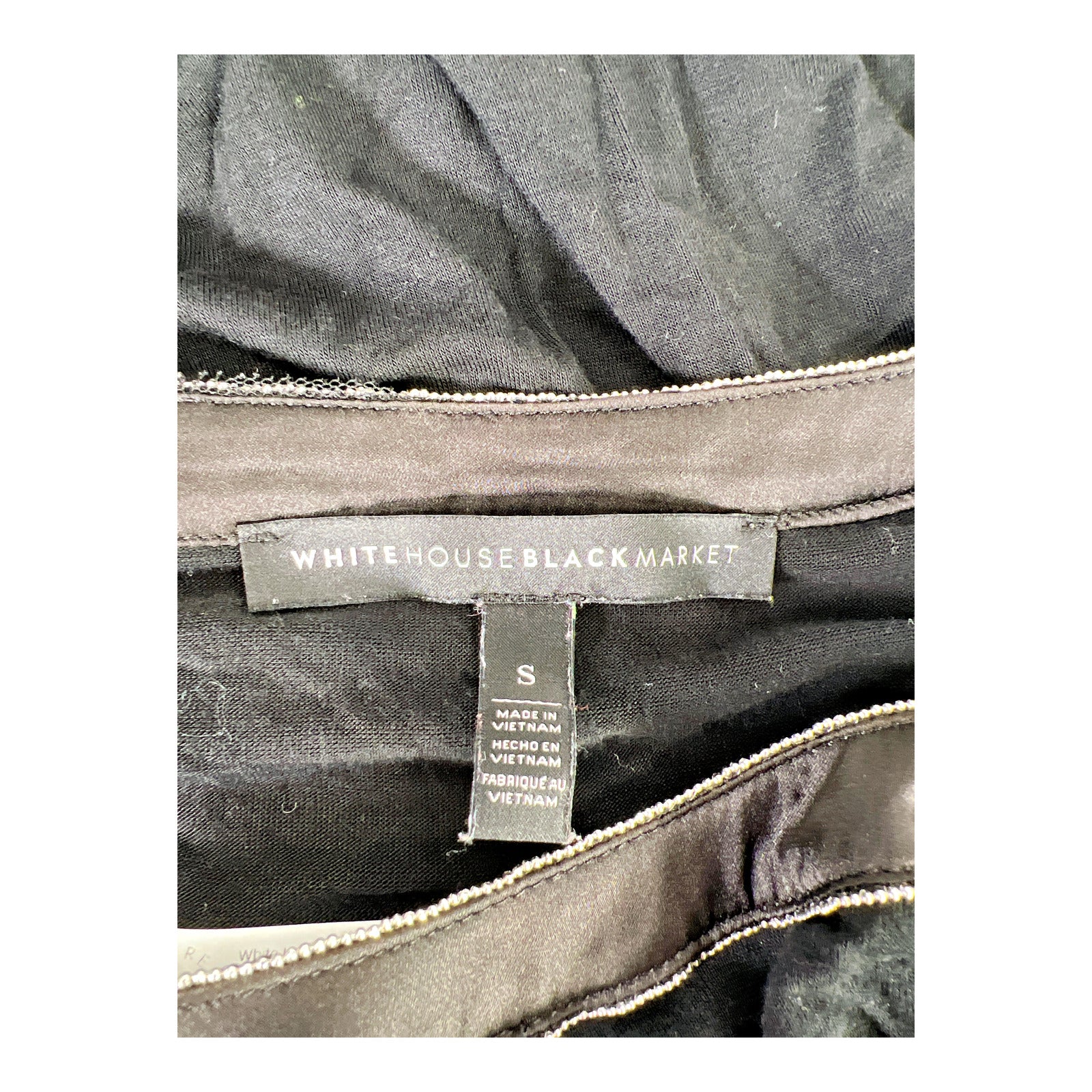White House Black Market Women’s Black Long Sleeve Beaded Neck Tiered Top - S