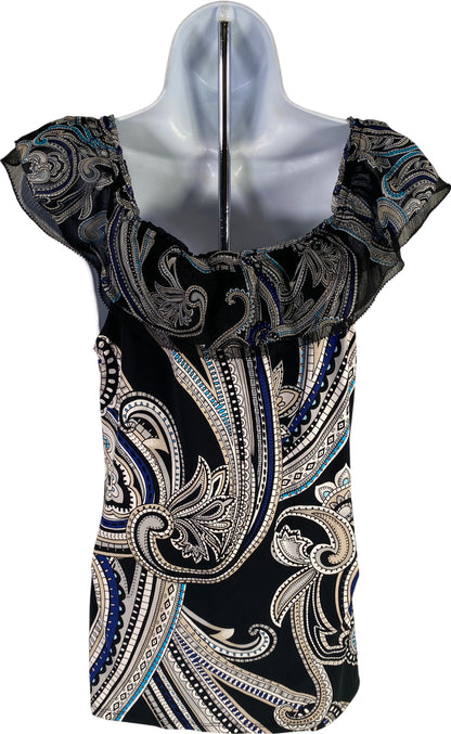 White House Black Market Women’s Black Paisley Sleeveless Blouse - S