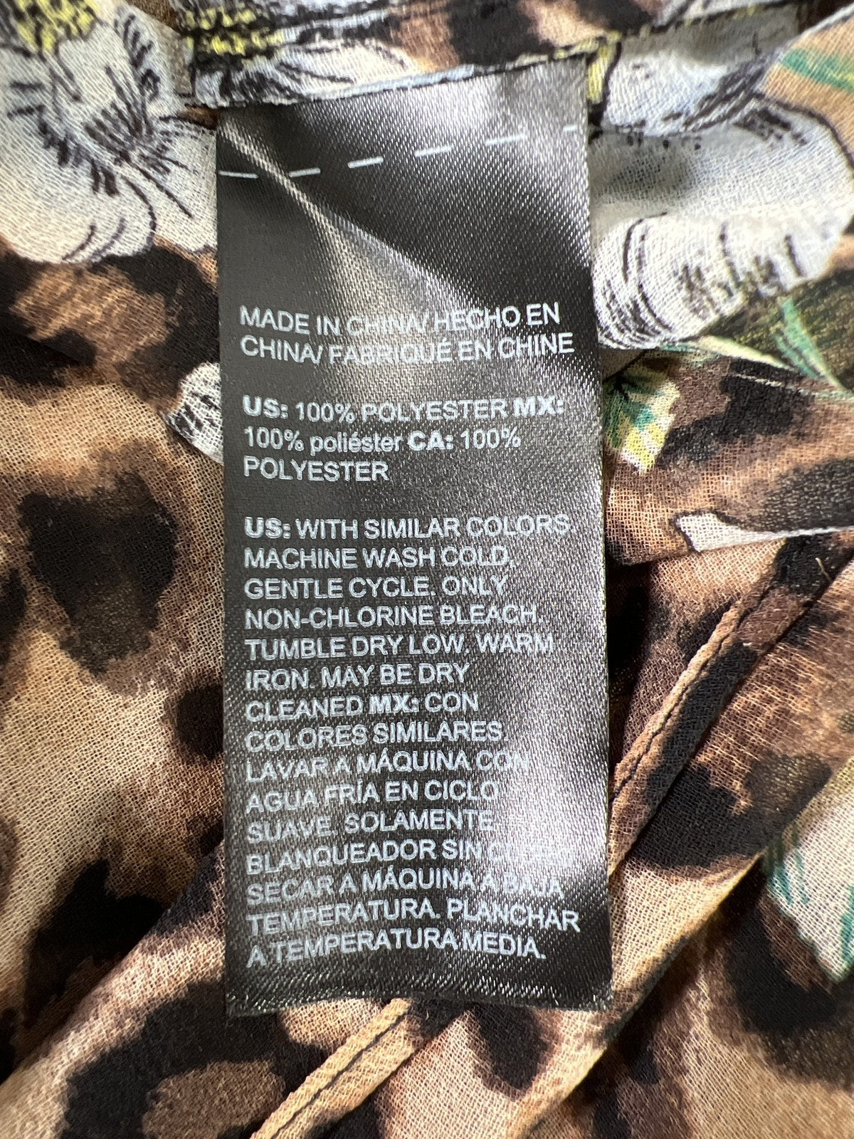 White House Black Market Women’s Brown Animal/Floral Button Up Sheer Blouse - S