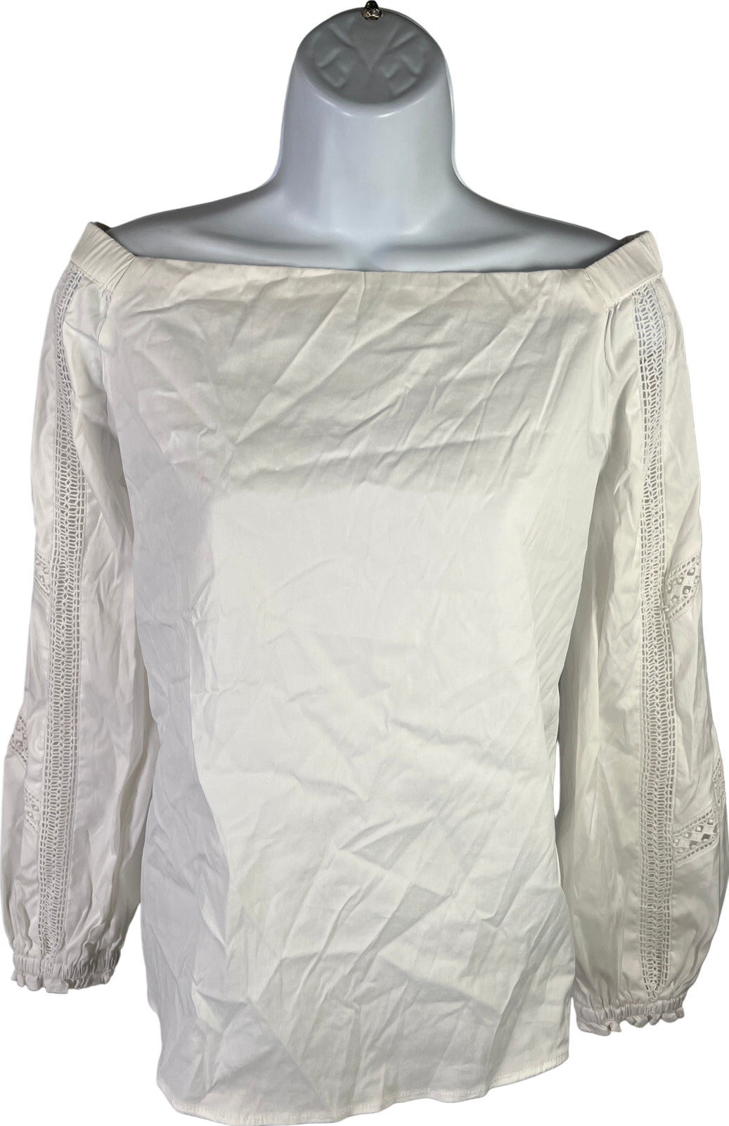 White House Black Market Women’s White Lace Inset Off The Shoulder Blouse - XS