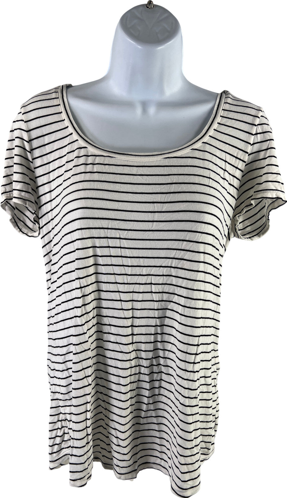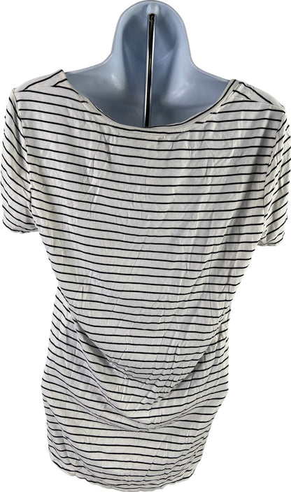 White House Black Market Women’s White Striped Short Sleeve T-Shirt - M