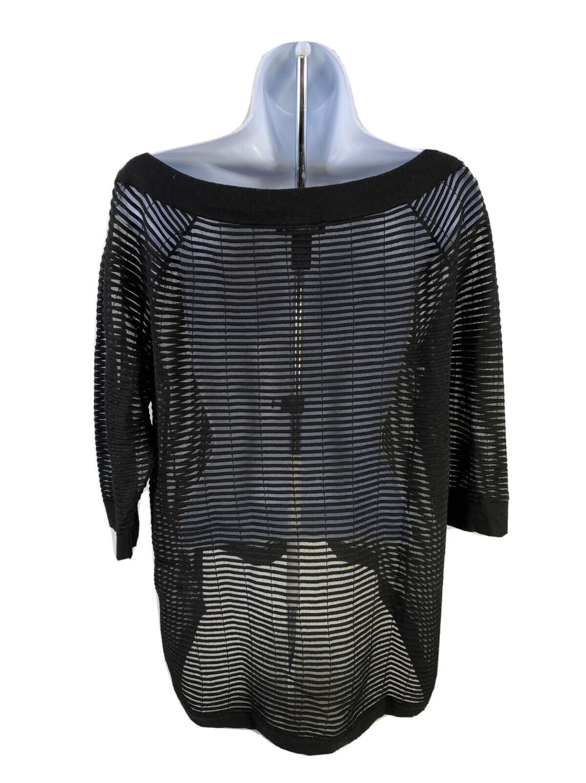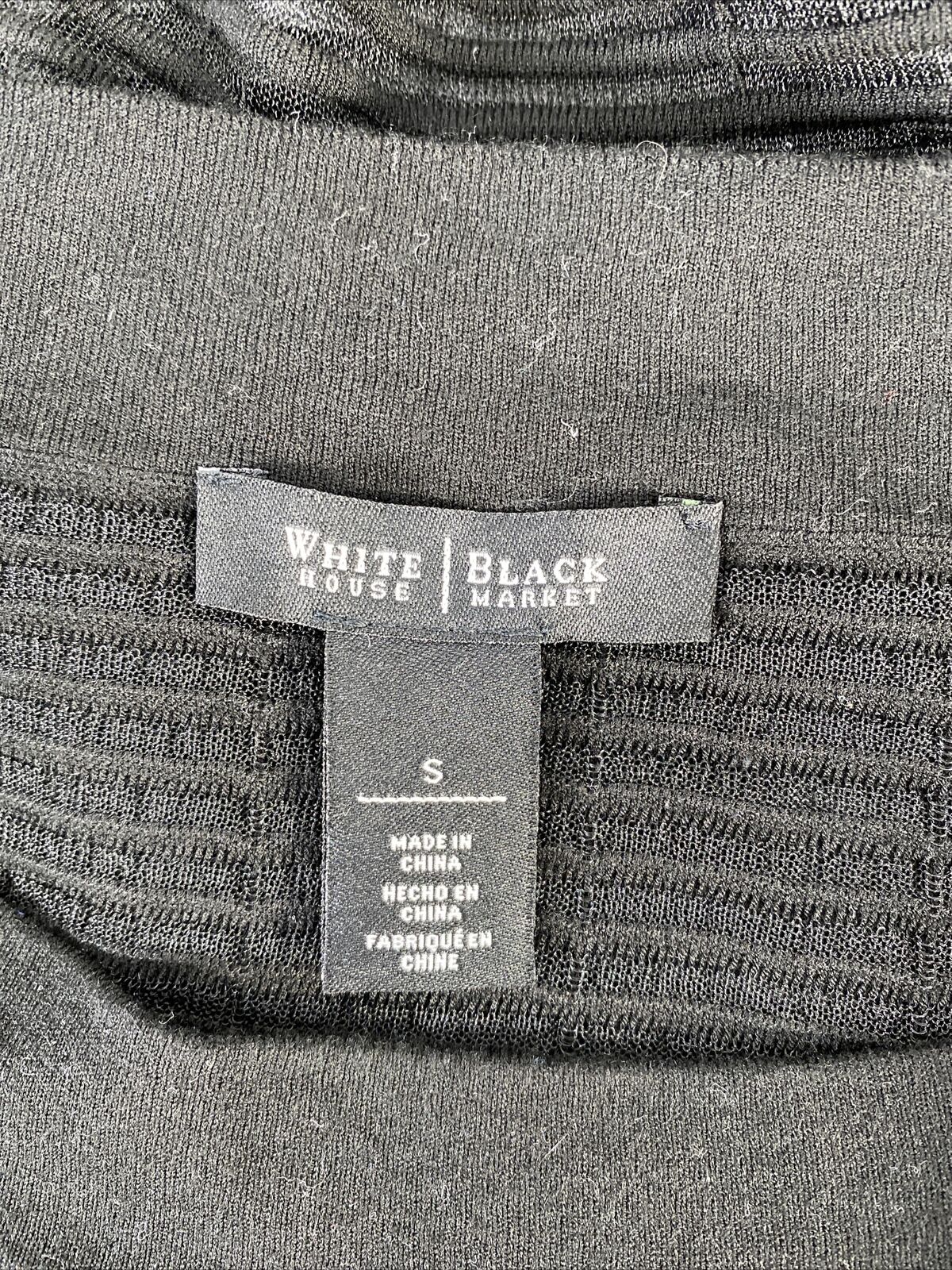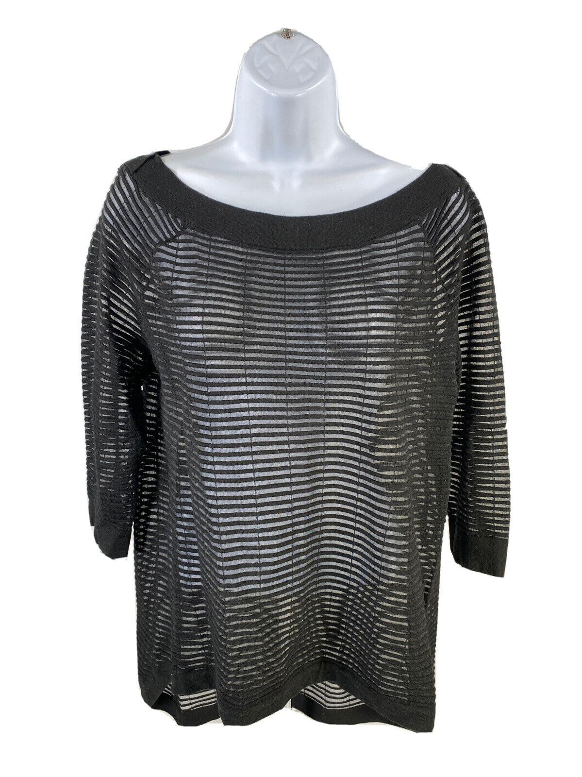 White House Black Market Women's Black Sheer 3/4 Sleeve Top - S